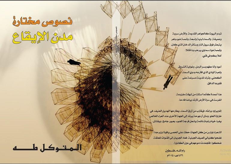 عن دار الجندي للنشر والتوزيع في مدينة القدس، صدر كتاب "مدن الإيقاع" الذي ضمّ النصوص التي كتبها الشاعر والأديب المتوكل طه عن المدن والدول التي زارها على مدار ثلاثة عقود، من القدس، مركز الكون وأرض السماء، مروراً بمدن الساحل الفلسطيني يافا، حيفا، عكا، غزة، وصولاً الى مصر، تونس، طرابلس، غرناطة، قرطبة، فلورنسا، الصين، الشام، بغداد والشارقة.