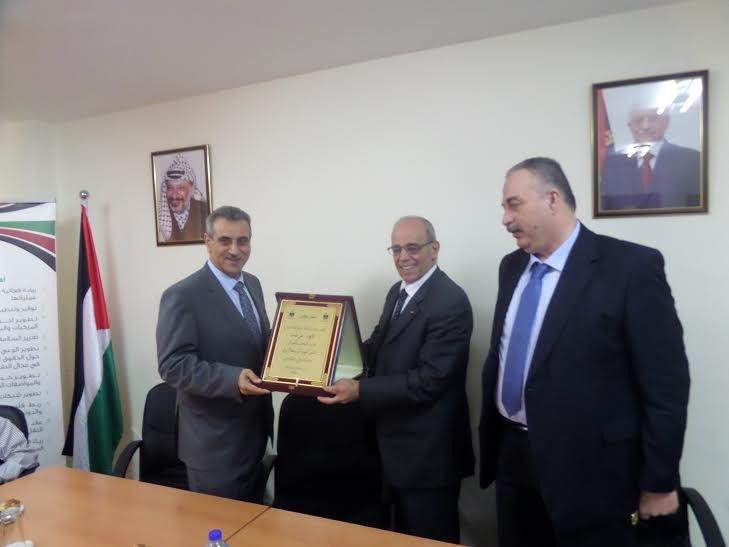قام وزير النقل والمواصلات المهندس سميح طبيلة صباح اليوم الخميس بتكريم وكيل الوزارة السابق الدكتور علي شعث تقديراً من الوزارة على جهوده وعطاءه خلال مسيرة عمله بالوزارة.
