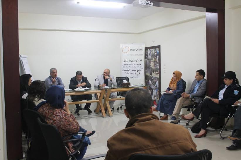 بحثت المؤسسة الفلسطينية للتمكين والتنمية المحلية REFORM في جلسة حوارية على مدار يومين واقع عمل النساء في الحسبة المركزية لمدينة البيرة وسبل ايجاد بيئة آمنة لهن بحضور مدير عام التشغيل في وزارة العمل رامي مهداوي، ورئيس وحدة الاستثمار في وزارة الاوقاف محمود أحمد، والمستشار القانوني لبلدية البيرة رياض العيسة، والخبير في مجال التنمية أسامة أبو كرش، ومدير وحدة النوع الاجتماعي في الشرطة الرائد وفاء الحسين، وممثلين عن الجهات ذات العلاقة من محافظة رام الله، ووزارة الاقتصاد، وجمعية المرأة العاملة، ومعهد ماس للدراسات، وغرفة تجارة رام الله والبيرة، ومرصد السياسات الاجتماعية والاقتصادية، اضافة الى عدد من السيدات العاملات في سوق الخضار، وذلك ضمن مشروع بيت الابداع الذي تنفذه المؤسسة.