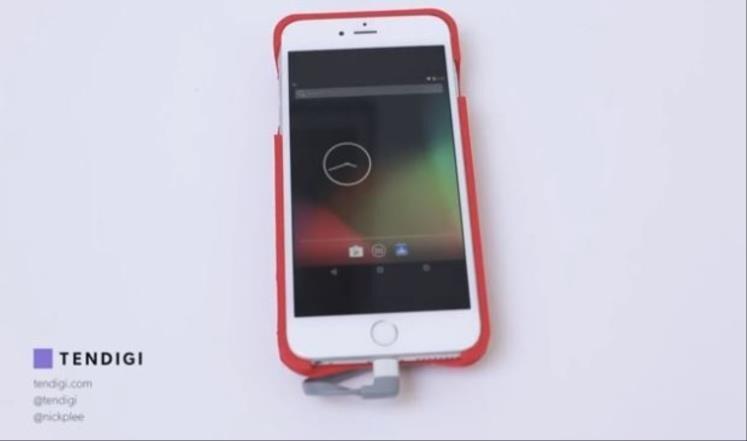 تمكنت شركة "تنديجي" المتخصصة في الملحقات التقنية من تطوير غلاف لهاتف آيفون يتيح لهذا الجهاز الذي يعمل حصريا بنظام "آي أو إس" أن يعمل أيضا بنظام تشغيل أندرويد الذي تطوره غوغل.