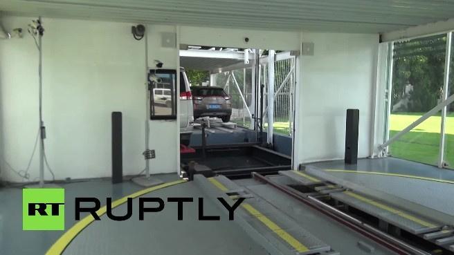 عرضت شركة Yee-fung Technology الصينية نموذجا أصليا خارقا لروبوت يصفّ السيارات في كراج على مرأى الجمهور في مقر الشركة في شينجيانغ في يوم الاثنين 20 يونيو/حزيران.