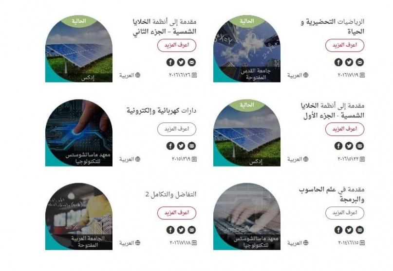 أطلقت جامعة القدس المفتوحة ومؤسسة الملكة رانيا للتعليم والتنمية "إدراك"، يوم الثلاثاء الموافق 19/7/2016م، مساق "الرياضيات التحضيرية والحياة"، وهو مساق إلكتروني جماعي مفتوح المصدر (MOOCs)، يعالج المفاهيم الأساسية لعلوم الرياضيات بأسلوب تفاعلي سهل يسير، باستخدام العروض التقديمية والأمثلة والوسائل المساندة الأخرى كحلقات النقاش والألعاب التعليمية الرياضية، التي صمّمت على أيدي خبراء لإبراز جمال الرياضيات وارتباطها وقوانينها بالحياة.