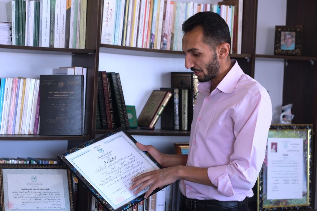 لم يتردد محمد العالم، دكتور علم الاجتماع الجنائي، كثيراً في اتخاذ أصعب قرار قد يتخذه أكاديمي مثله يوماً؛ أن يعلق شهادته العليا على الجدار فيما يتعلم صنعة "البناء" من أجل مواجهة مصاعب ومتطلبات الحياة والهروب من شبح البطالة المتفاقمة في قطاع غزة، علًه يتعلم بناء جدران تحطمت عليها طموحاته وأحلامه.