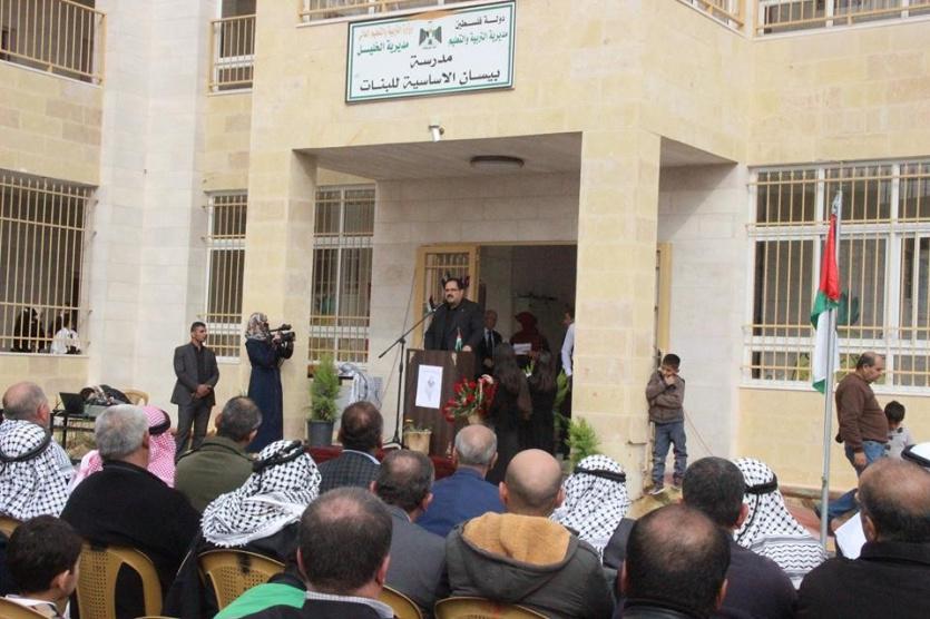 وقال مدير تربية وتعليم الخليل عاطف الجمل أن مدرسة بيسان على نفقة المجتمع المحلي سواء التبرع بالأرض وصولا لمرحلة بناءها وعمرانها بشكل كامل والتي تستوعب 350 طالبة.