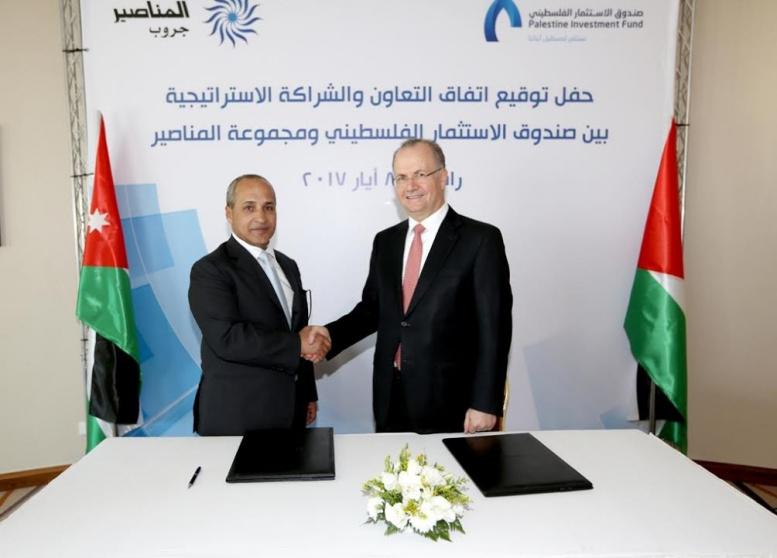 وقّع صندوق الاستثمار الفلسطيني من خلال ذراعه الاستثماري "شركة أسواق للمحافظ الاستثمارية" اتفاق تعاون استراتيجي مع شركة مجموعة المناصير الاردنية نتج عنه دخول الاخيرة كشريك استراتيجي للصندوق في شركة سند للموارد الانشائية، بما يحقق حزمةً كبيرةً من الفوائد الاستثمارية والتي سيكون لها أثر إيجابي كبير على الاقتصاد الوطني.