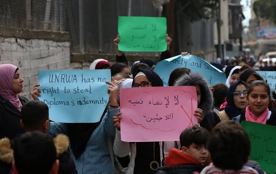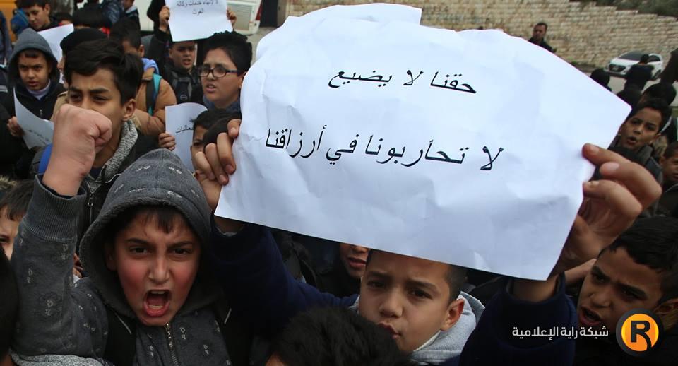 طلاب المدارس في مخيم بلاطة ينظمون وقفة ضد تقليصات الانروا