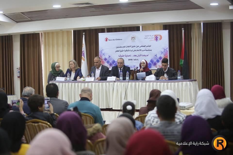 فعاليات المؤتمر الصحفي الخاص بمرور 29 عاما على ابرام اتفاقية الطفل والذي تشارك فيه الوزارة ممثلة بالوزير د. ابراهيم الشاعر، وبتنظيم من الحركة العالمية للدفاع عن الاطفال ومشاركة مجلس اطفال فلسطين.