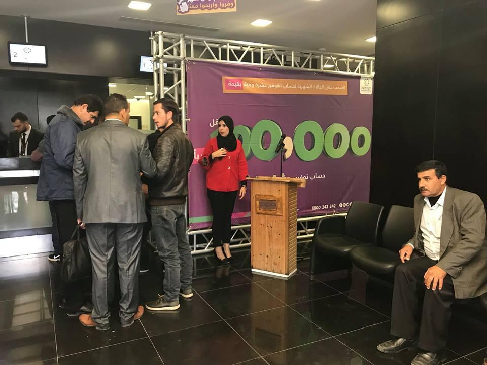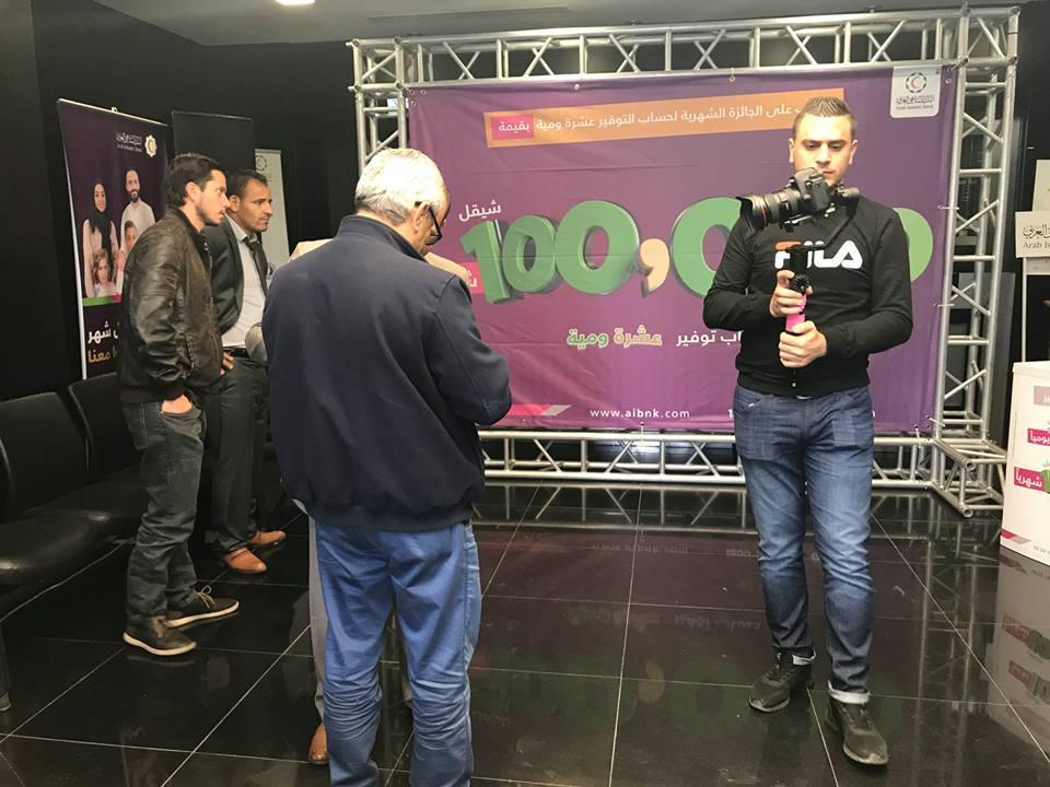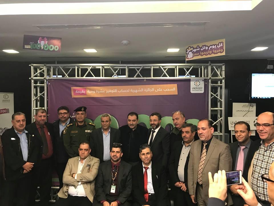البنك الاسلامي العربي فرع قلقيلية يجري السحب على الجائز الشهرية الرابعة بقيمة 100 الف شيكل لحملة حساب التوفير الجديد "عشرة ومية"، والذي يمكن فتحه بمبلغ 100 دولار فقط ليمكن صاحبه من الدخول على سحب يومي بقيمة 10 الاف شيكل و سحب شهري على 100 الف شيكل، حيث بدأ السحب اليومي بتاريخ 1/8/2018 ، و هذا رابع سحب على الجائزة الشهرية بقيمة 100 الف شيكل.
