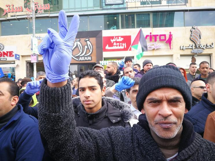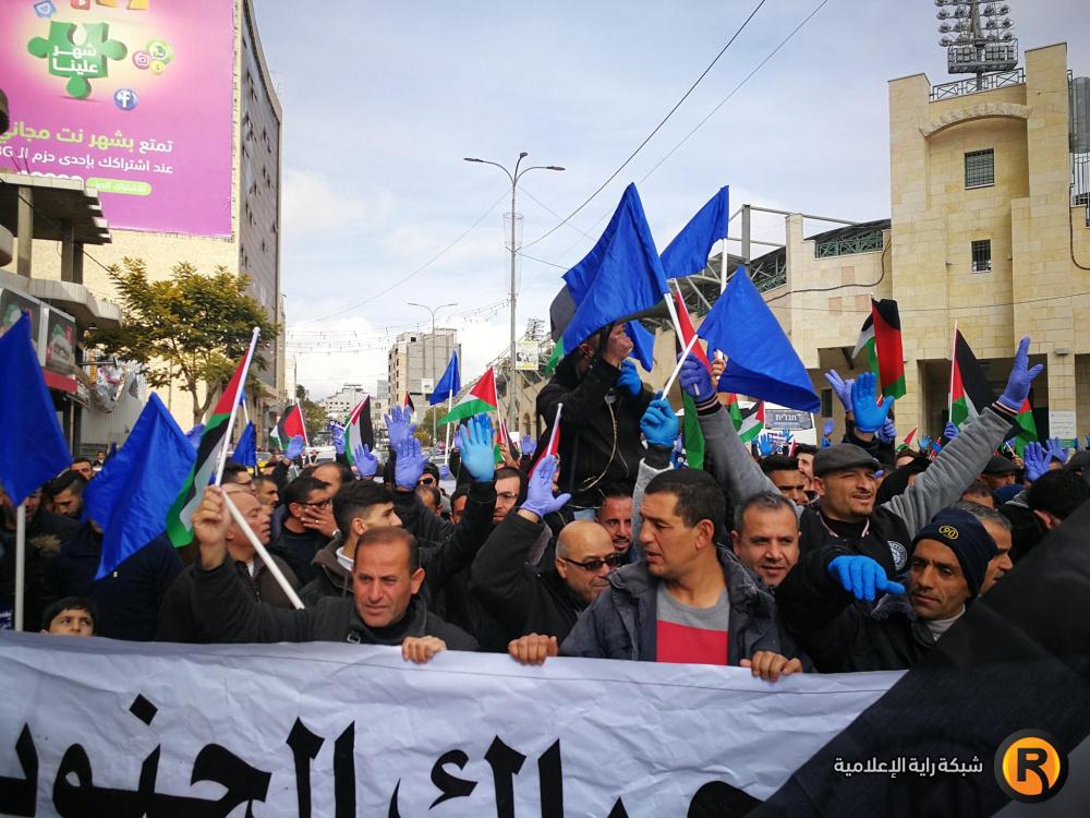 الخليل: مسيرة الحراك العمالي الفلسطيني للمطالبة باسقاط قانون الضمان الاجتماعي