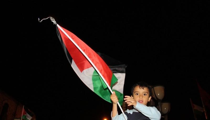 احتفالات أهالي الأسرى ومواطنين وسط مدينة نابلس عقب الإعلان عن انتصار الأسرى في السجون الاسرائيلية