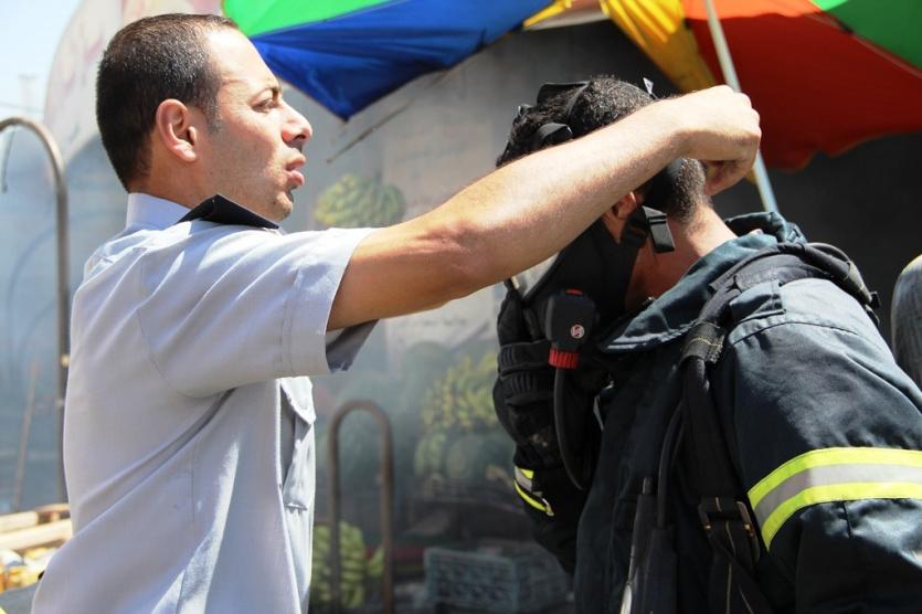 طواقم الدفاع المدني تخمد حريق بمحل خضار برام الله قبل قليل