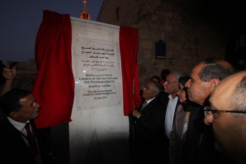 رئيس الوزراء الدكتور سلام فياض خلال احتفالية وضع مدينة بيت لحم على لائحة التراث الثقافي العالمي في منظمة اليونسكو - مساء أمس - ساحة المهد