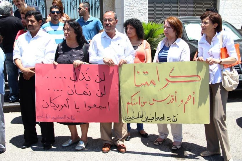 اعتصام للصحفيين الفلسطينيين أمام القنصلية الأميركية في رام الله