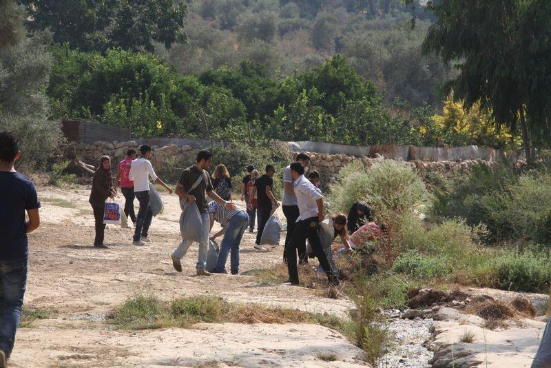" يلا نعمر بلدنا " يوم تطوعي بالتعاون ما بين نادي بيتلو الرياضي ومشروع الشراكة من أجل التنمية والحملة الشعبية لمقاومة الجدار في واد الزرقاء في قرية بيتلو