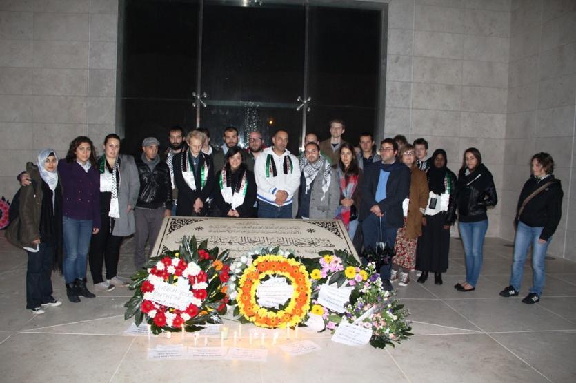 وفد من المنتدى الشبابي يزور ضريح الرئيس ياسر عرفات و يشعل الشموع في ذكرى رحيله