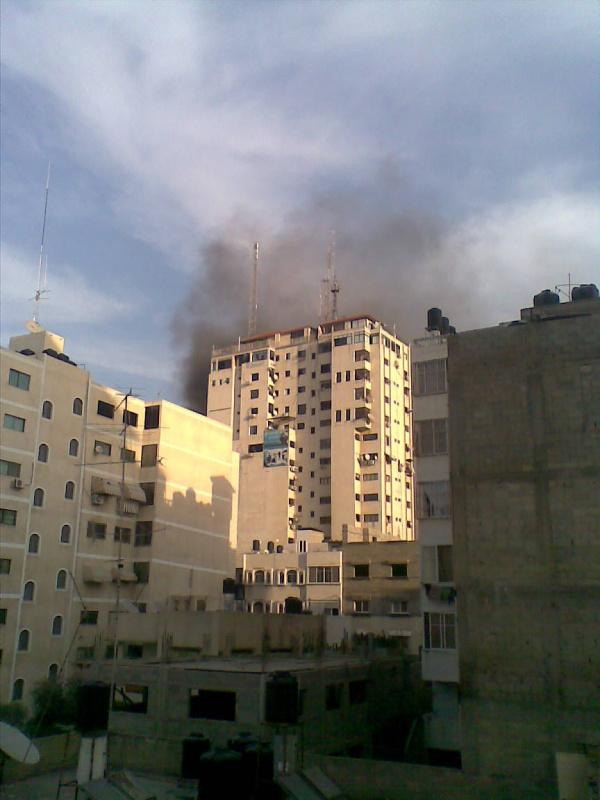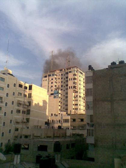 صور أولية لقصف برج الشروق وسط غزة