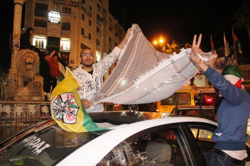 احتفالات شوارع رام الله بإعلان فلسطينة دولة في الامم المتحدة