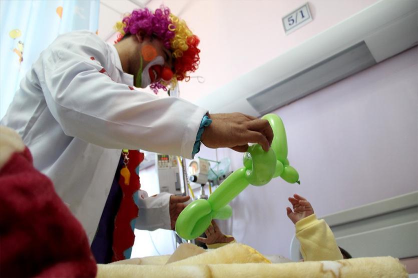 بابا نويل والمهرج عمو مهند يوزعون هدايا الميلاد المجيد في مجمع فلسطين الطبي