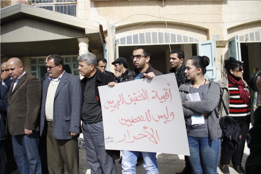 اعتصام امام نقابة الصحفيين في مدينة رام الله ضد اعتقال الصحفيين في غزة