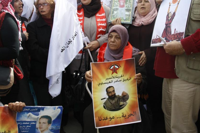 اعتصام تضامني ومسيرة نسائية احتجاجا على ما يعانيه الأسرى في سجون الاحتلال أمام الصليب الأحمر