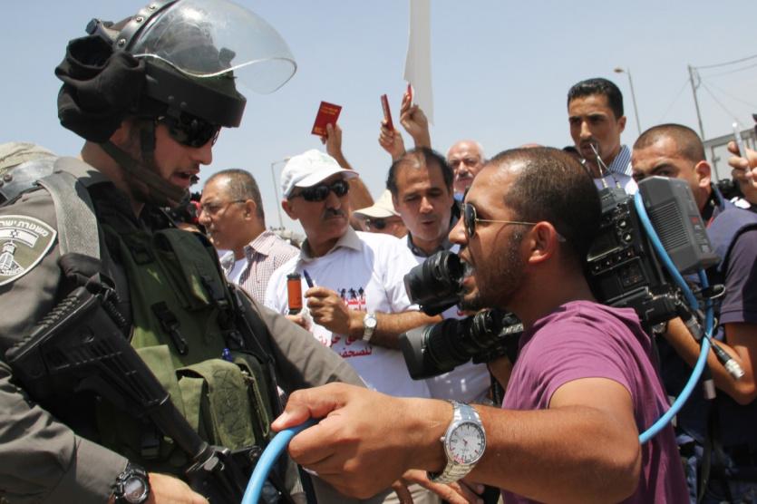 جنود الإحتلال اعتدوا اليوم على عشرات الصحافيين خلال محاولتهم الدخول للقدس في اليوم العالمي لحرية الحركة للصحافيين على حاجز قلنديا