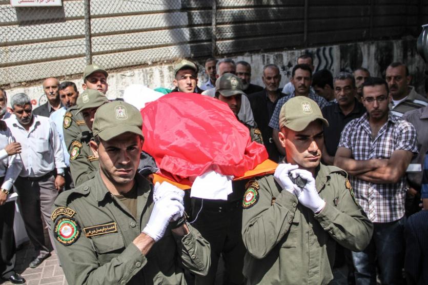 مراسم عسكرية لتشييع جثمان الأسير المحرر أحمد جباره "ابو السكر" في مجمع فلسطين الطبي في رام الله