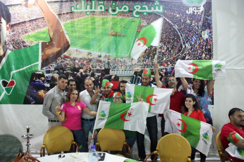 من تشجيع مباراة الجزائر في خيمة فينيو في رام الله