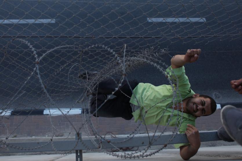 أثناء محاولة شبان اجتياز الجدار بعد منعهم من الدخول من خلال حاجز قلنديا