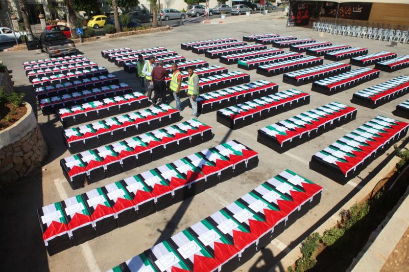 تضامن رمزي .بلدية رام الله تصمم نعوشا لشهداء غزة