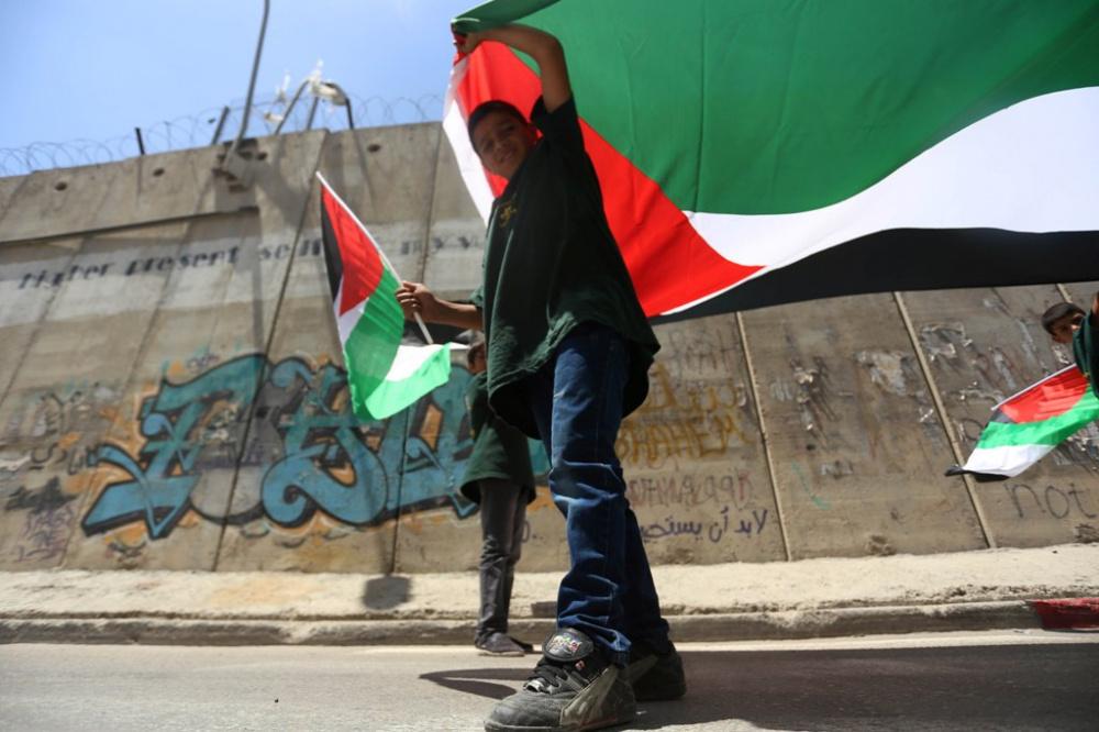 فلسطينيون يطلقون "بالونات" تجاه مدينة القدس من بلدة الرام ضمن حملة " ارفع علمك ..هذا وطنك"