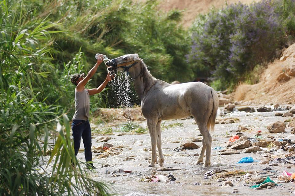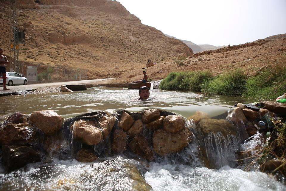 الاجواء الحارة تدفع المواطنين للاستجمام في عين العوجا