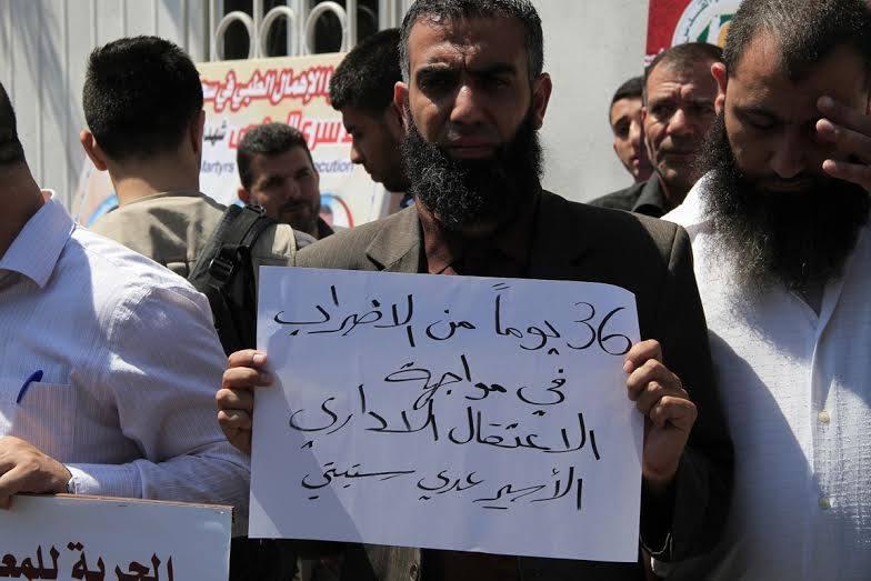 نظمت مؤسسة مهجة القدس للشهداء والأسرى اليوم الاربعاء، أمام مقر المندوب السامي لحقوق الإنسان في غزة، وقفة دعم واسناد للأسرى المضربين عن الطعام في سجون الاحتلال، بمشاركة واسعة من المتضامنين وقيادة حركة الجهاد الإسلامي، ودعا المشاركون كافة المؤسسات الدولية والحقوقية لتقول كلمتها أمام مايجري في سجون الاحتلال من انتهاكات.