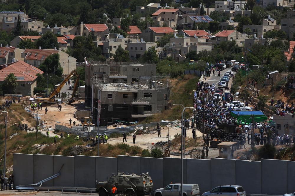واندلعت مواجهات بين المستوطنين والشرطة الاسرائيلية في محيط البنايتين.