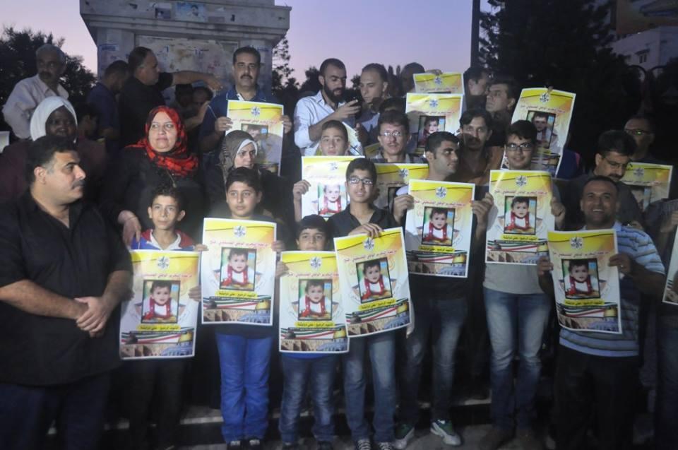 نظمت حركة فتح وقفة احتجاجية مساء السبت على الجريمة البشعة التي طالت الطفل على دوابشة وعائلة دوابشة باكملها حيث تم احراق بيت عائلة الدوابشة من قبل قطعان المستوطنين وادى بذلك الى استشهاد الطفل البريء على دوابشة واصابة عائلته بجروح بالغة الخطورة.