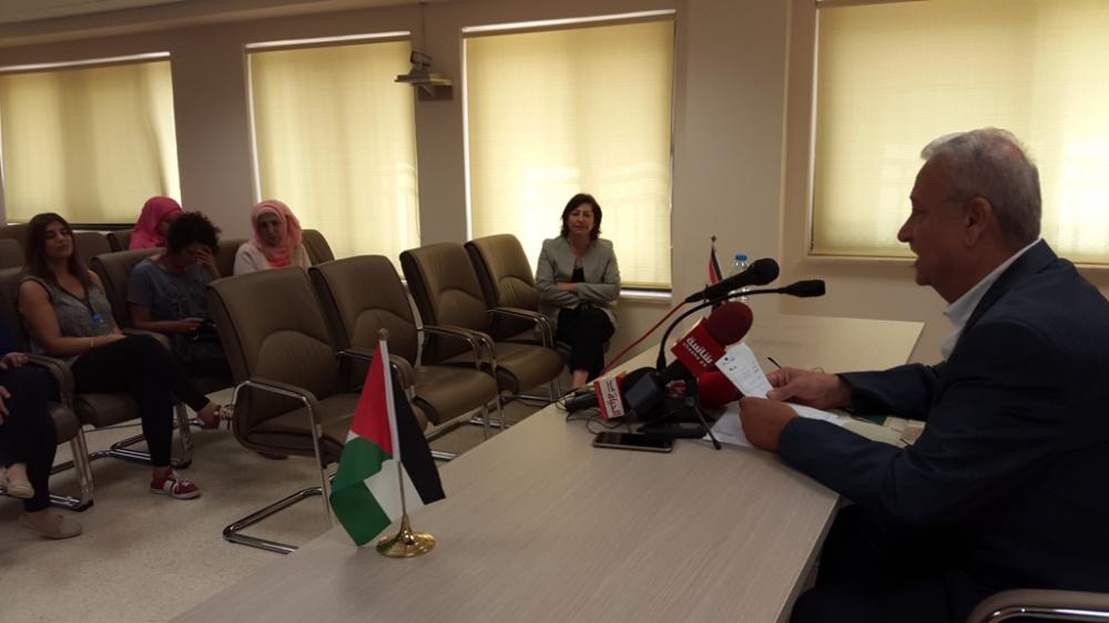 رئيس جامعة بيرزيت يعقد مؤتمرا صحفيا في الجامعة