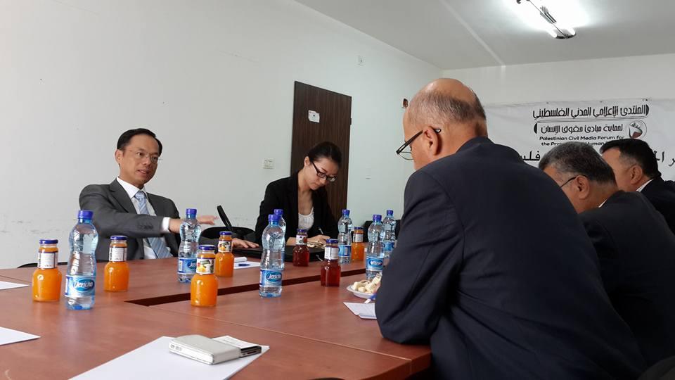 اجتماع السفير الصيني مع نقابة الصحفيين اليوم في مقر النقابة في رام الله