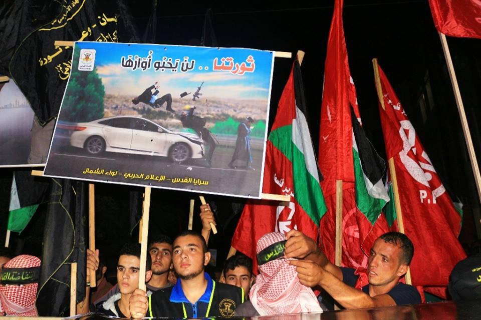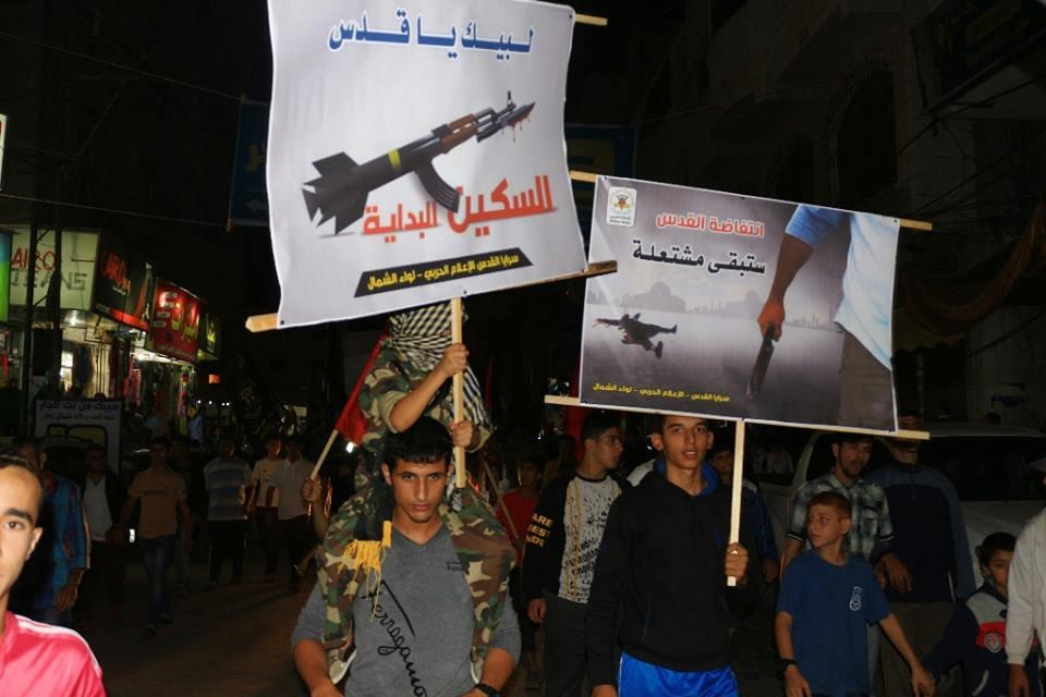 تصوير: سامح أبو دية - نظمت حركة الجهاد الاسلامي شمال قطاع غزة مساء اليوم الاثنين، مسيرة بعنوان "انتفاضة القدس .. يد واحدة وصوت واحد" دعما واسنادا للهبة الشعبية في القدس والشفة الغربية، بمشاركة حركتي فتح وحماس والجبهة الشعبية.