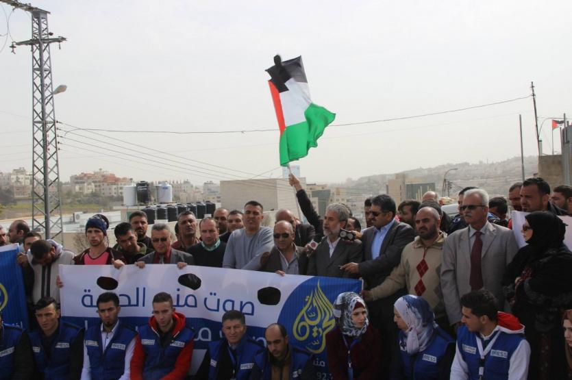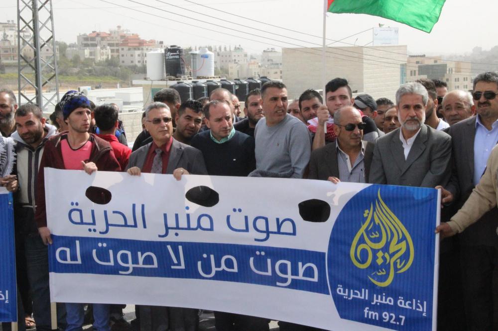 الخليل: وقفة تضامنية ضد اغلاق الاحتلال لاذاعة منبر الحرية في الخليل