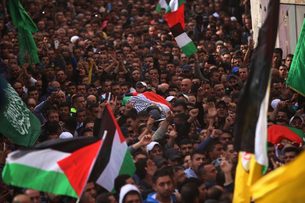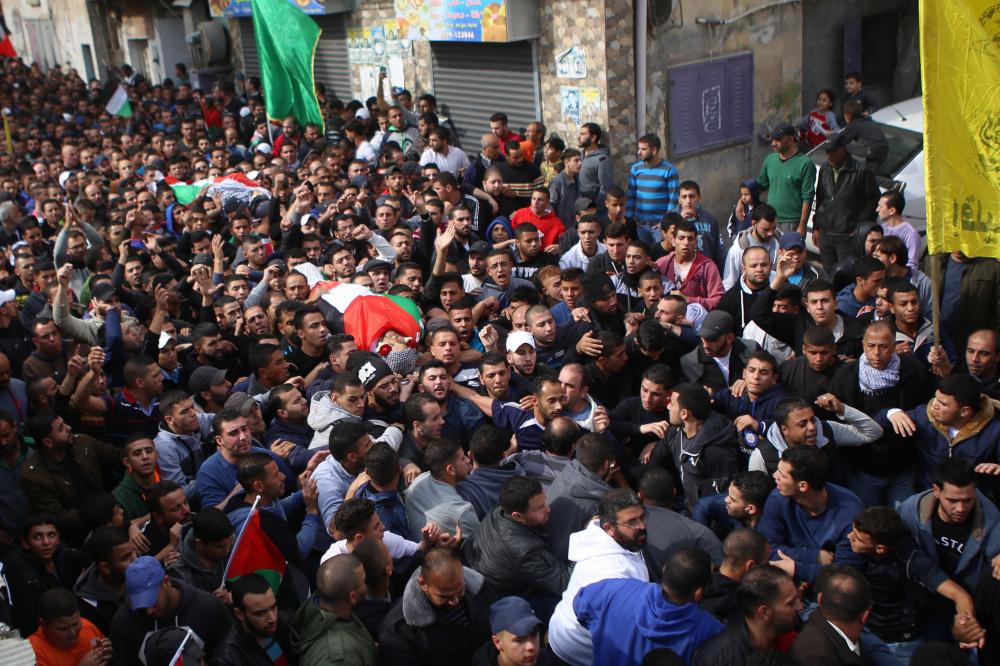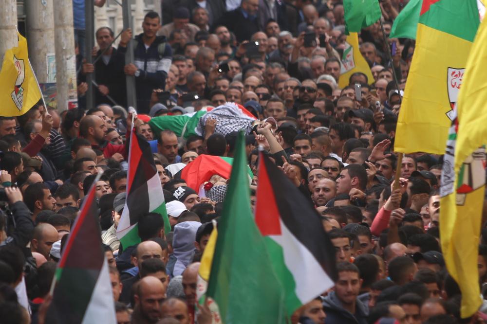 تشييع جثماني الشهيدين ليث اشرف مناصرة وأحمد أبو العيش (28) ع في مخيم قلنديا