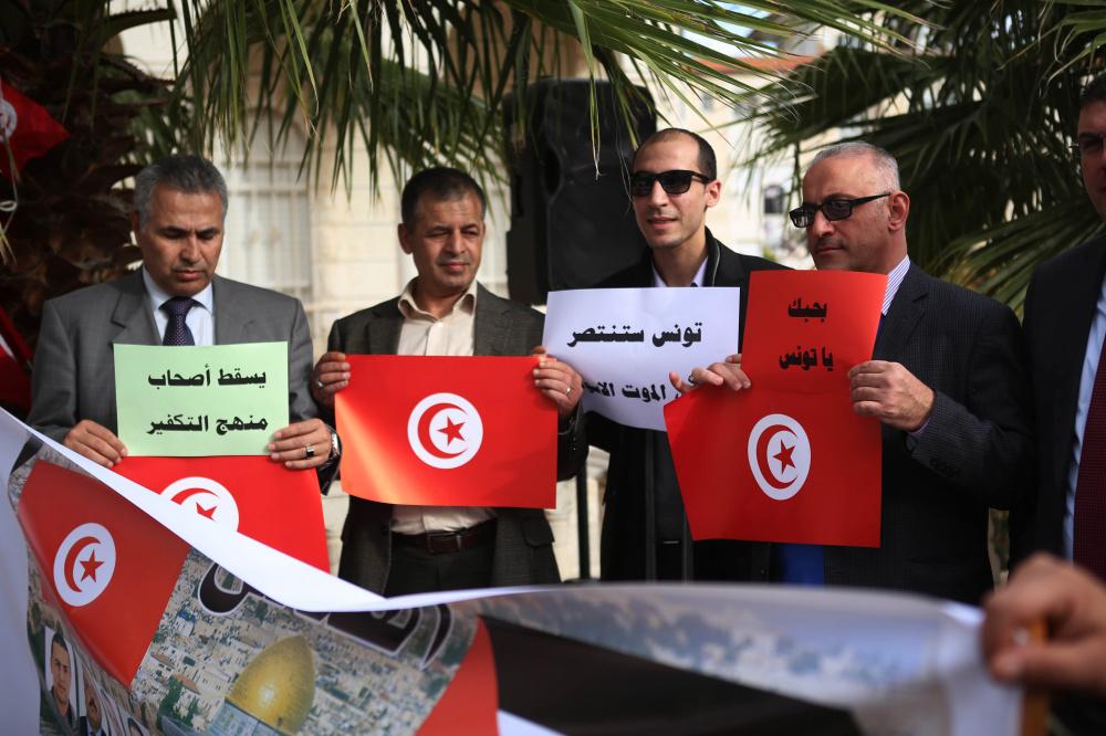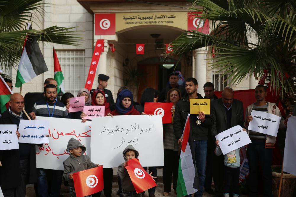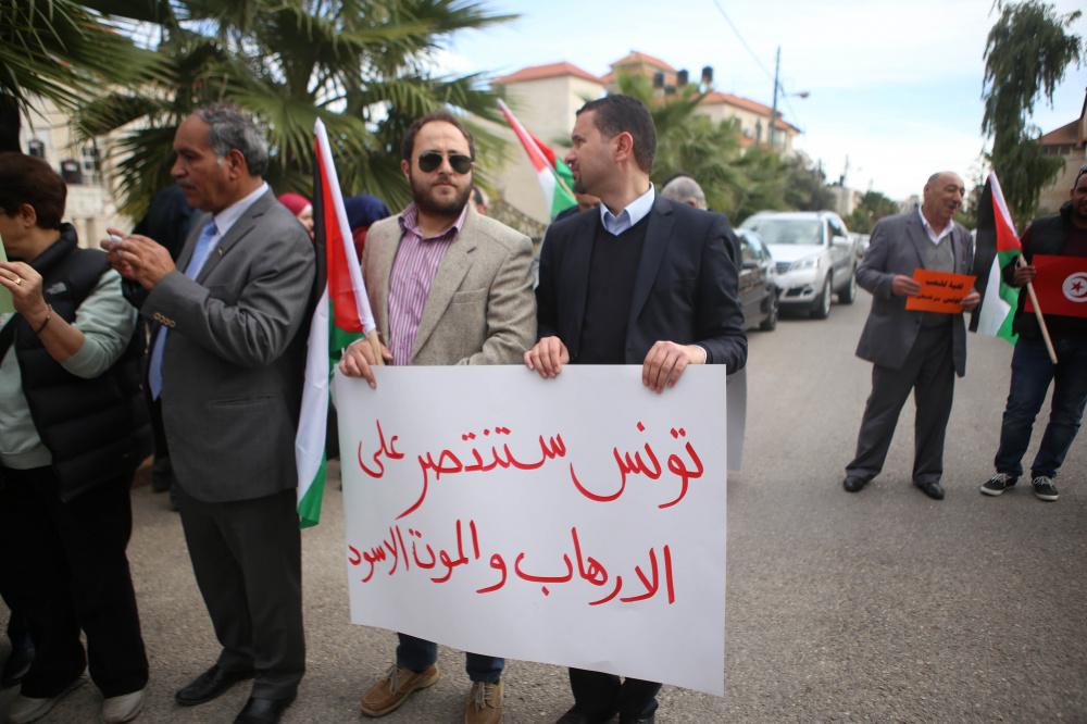 وقفة تضامنية أمام سفارة تونس في رام الله ضد الإرهاب