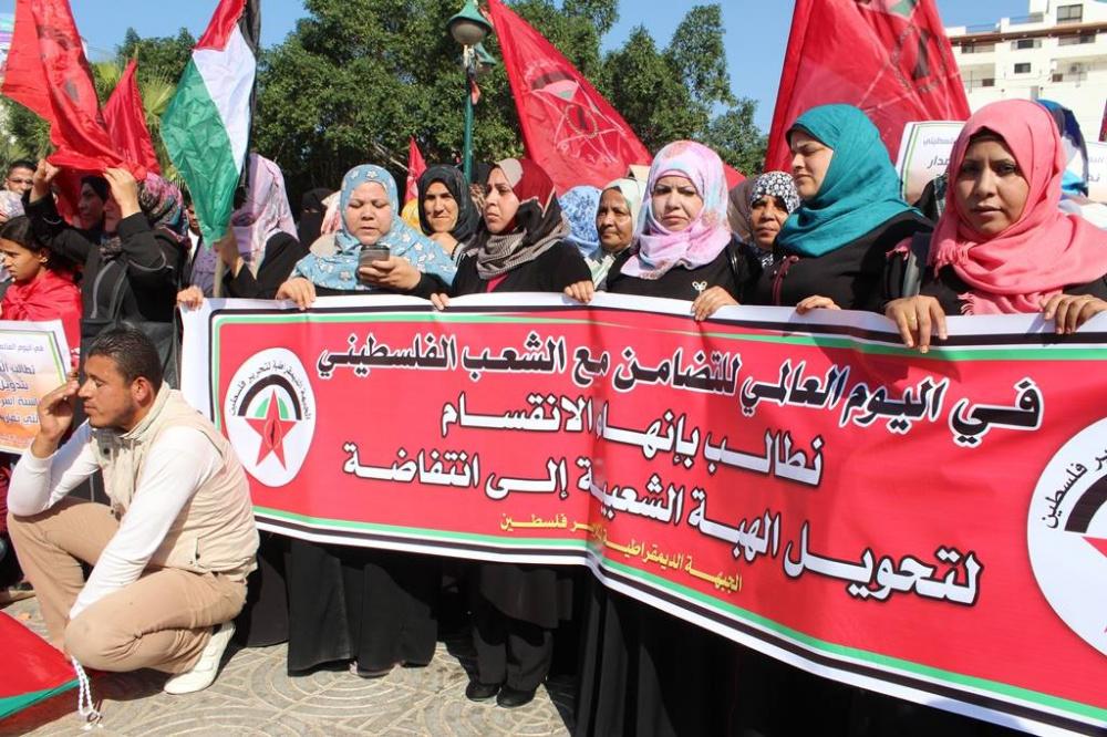 شاركت الفصائل الفلسطينية بقطاع غزة في مسيرة ووقفة في اليوم العالمي للتضامن مع الشعب الفلسطيني الذي يصادف اليوم الأحد، دعت لها الجبهة الديمقراطية، حيث دعا المشاركون في المسيرة الى انهاء الانقسام وتطوير الهبة الشعبية في الضفة والقدس الى انتفاضة جماهيرية، وتجسيد دولة فلسطينية مستقلة وعاصمتها القدس الشريف.