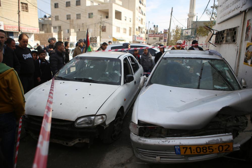 صور للسيارتين اللتين كان يستقلهما الشهيدان احمد جحاجحة وحكمت حمدان في مخيم قلنديا قبل اطلاق الرصاص عليهما ما ادى الى استشهادهما واصابة شاب ثالث كان مع احدهما...تظهر الصور تعرض احدى السيارتين لاكثر من 20 رصاصة في الواجهة الامامية.
