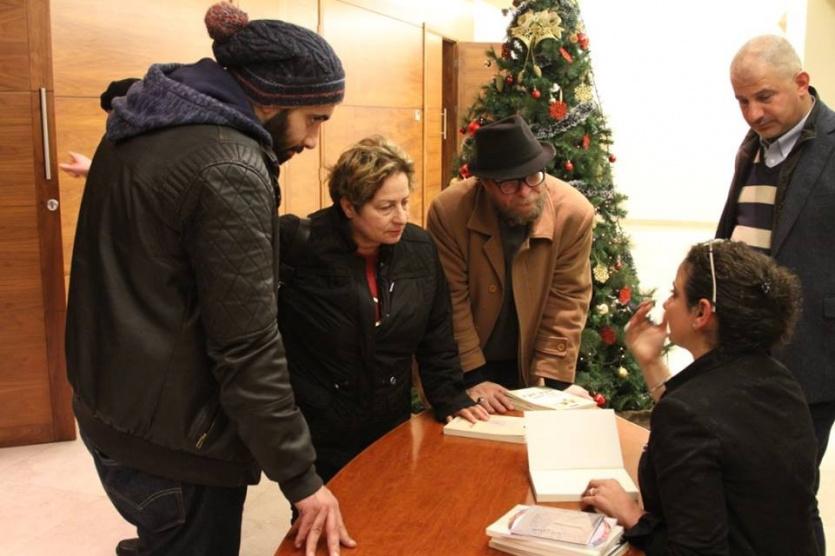 الكاتبة الروائية ابتسام عازم، توقع روايتها "سفر الاختفاء" في متحف درويش، بمدينة رام الله.