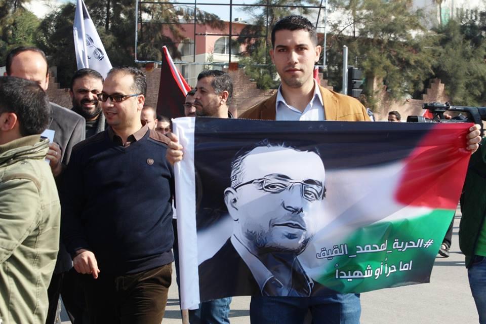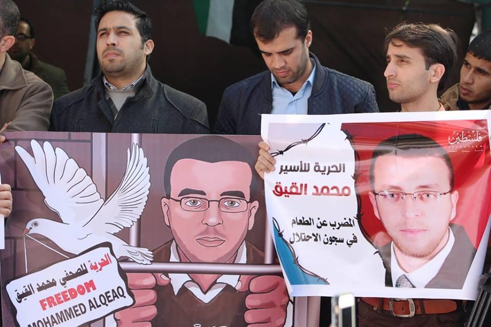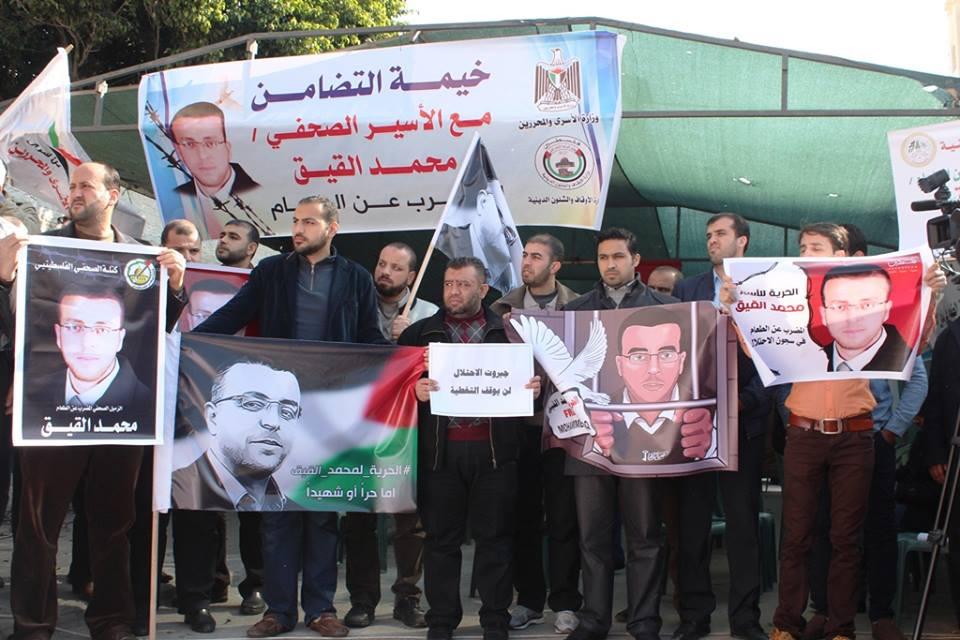 وقفة وخيمة تضامن بغزة مع الأسير الصحفي "محمد القيق"