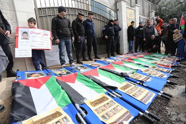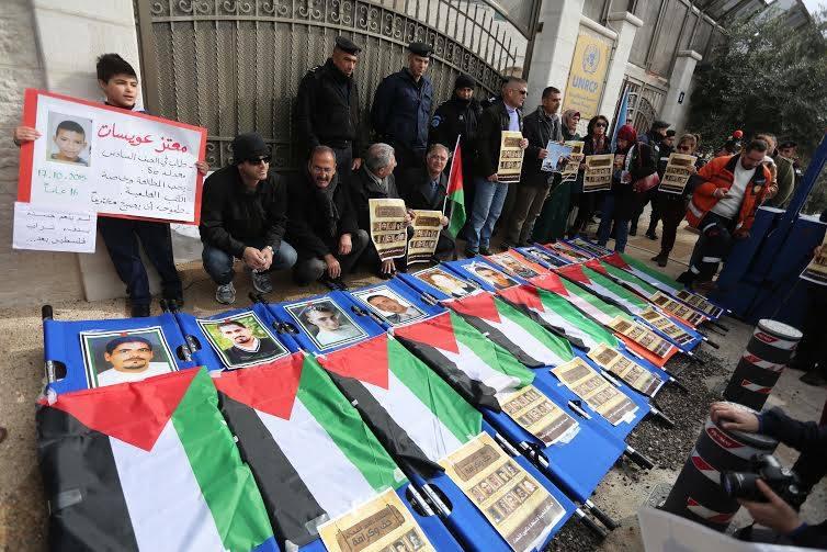 رام الله: وقفة إحتجاجية أمام مكتب الأمم المتحدة للإفراج عن جثامين الشهداء