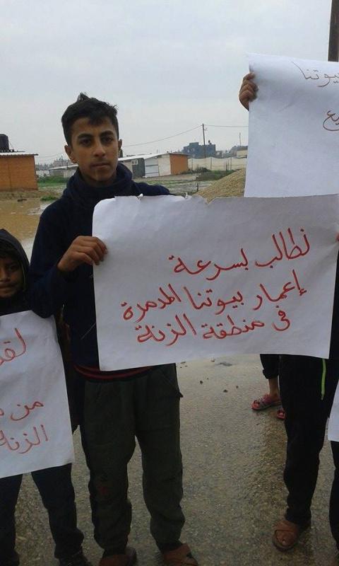 خانيونس: نازحو الزنة يتظاهرون للمطالبة باعمار بيوتهم ووقف معاناتهم