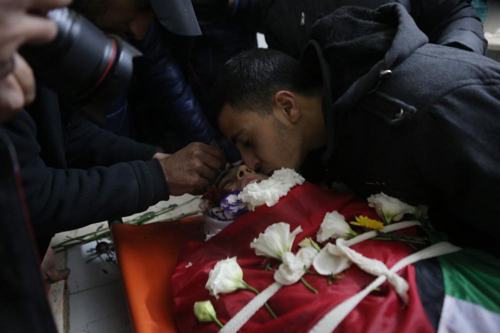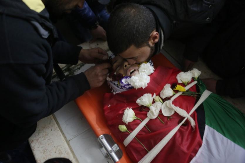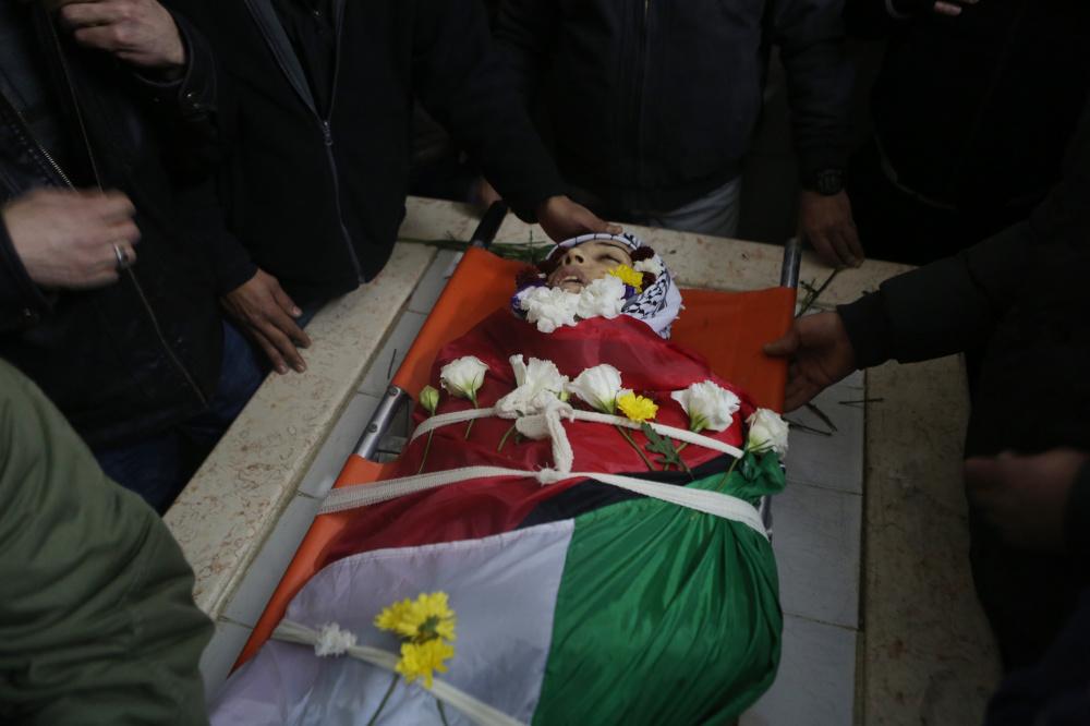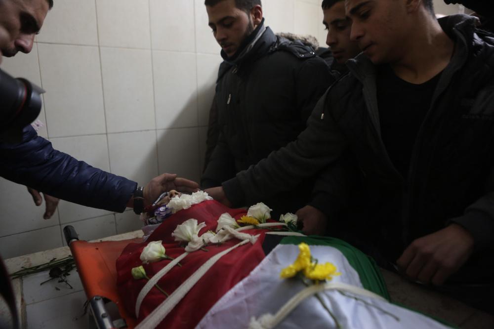الشهيد حسين أبو غوش من مخيم قلنديا خلال وداعه في مجمع فلسطين الطبي في رام الله