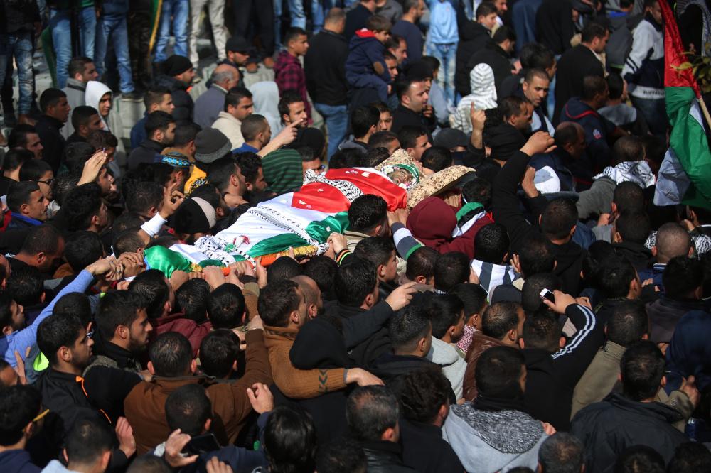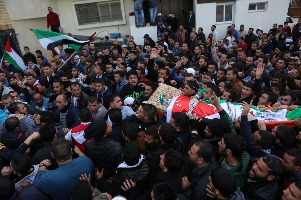 تشييع جثمان الشهيد إبراهيم علان في قرية بيت عور التحتا