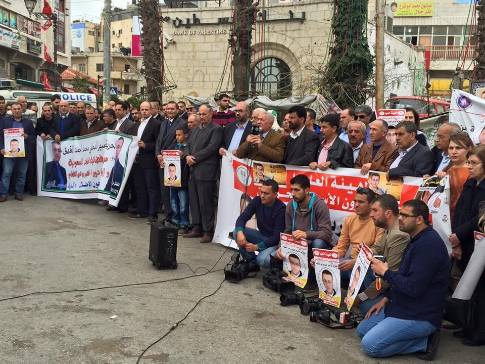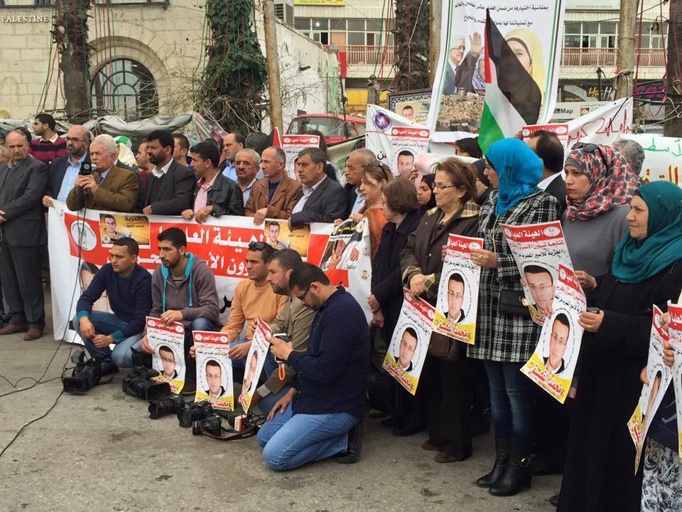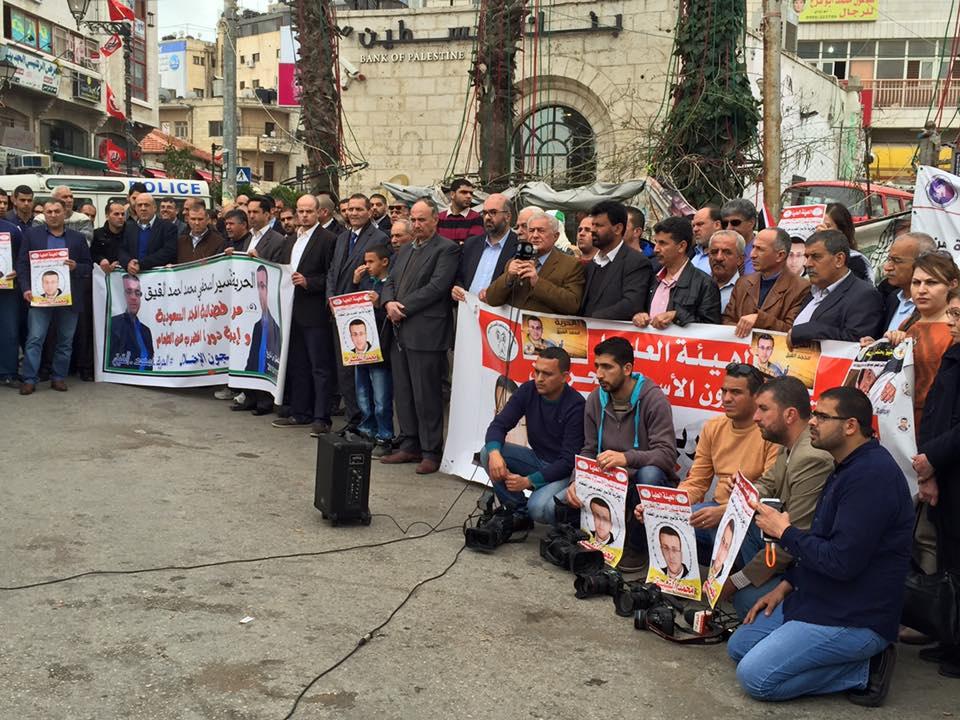 اعتصام تضامنا مع الاسير الصحفي محمد القيق في رام الله