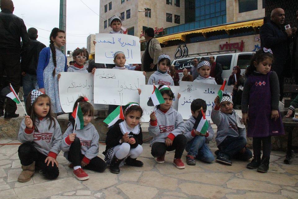 الصحفيون والمعلمون المضربون وأطفال الخليل في وقفة تضامنية مع القيق